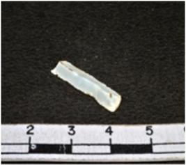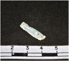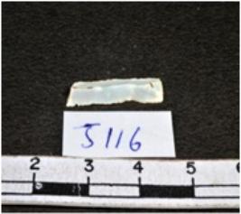 | Description / विवरण | A fragment of a rectangular shaped chalcedony blade showing dorsal sides with sharp cutting edges having smooth surface and triangular section. |