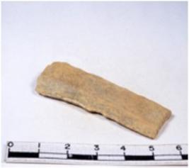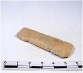 | Description / विवरण | A fragment of a rectangular shaped chert blade showing parallel sides with sharp edges having smooth surface and triangular section. |