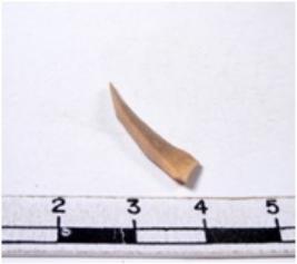 | Description / विवरण | A fragment of a rectangular shaped chert blade showing dorsal sides with sharp edges having smooth surface and triangular section. |