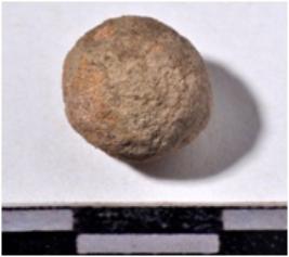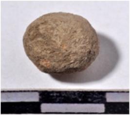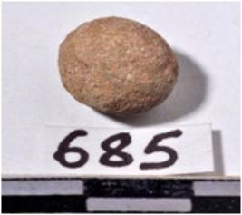 | Description / विवरण | A stone sling ball, round in shape of rough surface. |