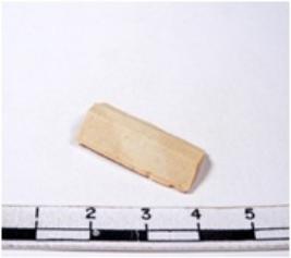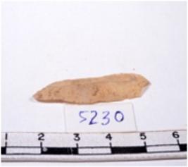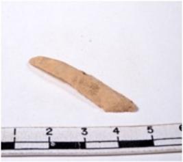 | Description / विवरण | A fragment of a rectangular shaped chert blade showing dorsal sides with sharp edges having smooth surface and triangular section. |