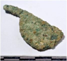 | Description / विवरण | A mended copper knife, sharpened edge, having handle of rough surface. |