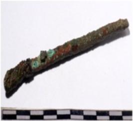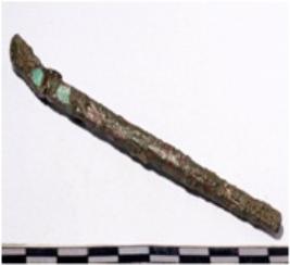 | Description / विवरण | A fragment of a mended copper chisel broken from both end of smooth surface. |