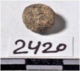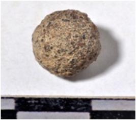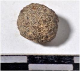 | Description / विवरण | A stone sling ball, round in shape of rough surface. |