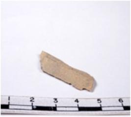 | Description / विवरण | A fragment of a rectangular shaped chert blade showing dorsal sides with sharp edges having smooth surface and triangular section. |