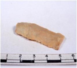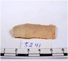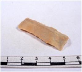 | Description / विवरण | A fragment of a rectangular shaped chert blade showing dorsal sides with sharp cutting edges having smooth surface and triangular section. |