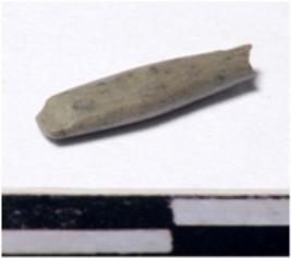 | Description / विवरण | A fragment of a stone drill bit circular in section broken from one end of smooth surface. |
