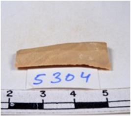 | Description / विवरण | A fragment of a rectangular shaped chert blade showing dorsal sides having smooth surface and triangular section. |