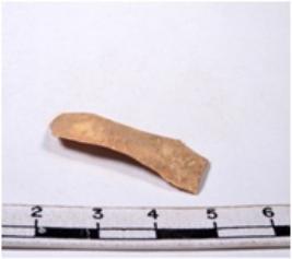 | Description / विवरण | A fragment of a rectangular shaped chert blade showing dorsal sides with sharp edges having smooth surface and triangular section. |