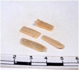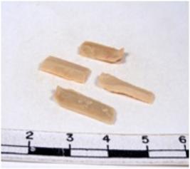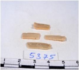 | Description / विवरण | A fragment of a rectangular shaped chert blade showing dorsal sides with sharp edges having smooth surface and triangular section. |
