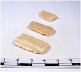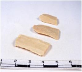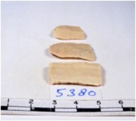 | Description / विवरण | A fragment of a rectangular shaped chert blade showing dorsal sides with sharp cutting edges having smooth surface and triangular section. |