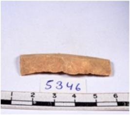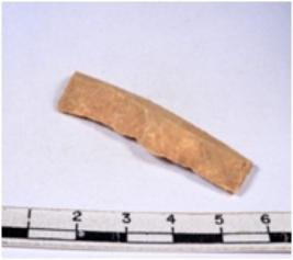 | Description / विवरण | A fragment of a rectangular shaped chert blade showing dorsal sides with sharp edges having smooth surface and triangular section. |
