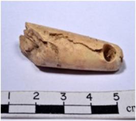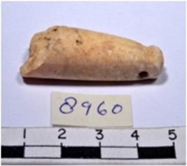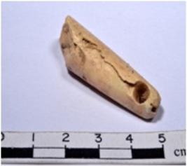 | Description / विवरण | A fragment of shell nail broken from lower end showing perforation on upper end having rough surface. |
