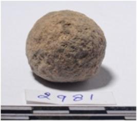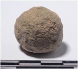 | Description / विवरण | A fragment of a stone sling ball round in shape of rough surface. |
