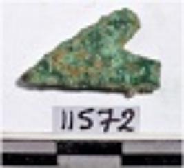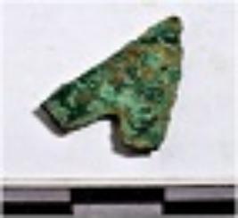 | Description / विवरण | A fragment of a copper triangular shaped arrow head having pointed one end of rough surface. |