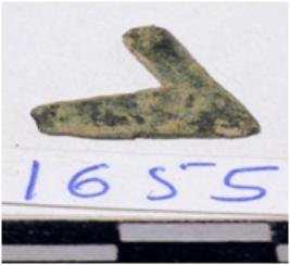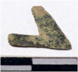 | Description / विवरण | A fragment of a copper arrow head triangular in shape having pointed on one end of rough surface. |