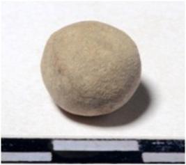 | Description / विवरण | A stone sling ball round in shape of rough surface. |