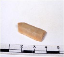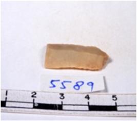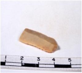 | Description / विवरण | A fragment of a rectangular shaped chert blade showing dorsal sides with sharp cutting edges having smooth surface and triangular section. |