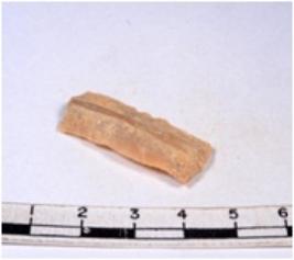 | Description / विवरण | A fragment of a rectangular shaped chert blade showing dorsal sides with sharp cutting edges having smooth surface and triangular section. |
