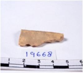 | Description / विवरण | A fragment of a rectangular shaped chert blade showing dorsal sides with sharp cutting edges having smooth surface and triangular section. |