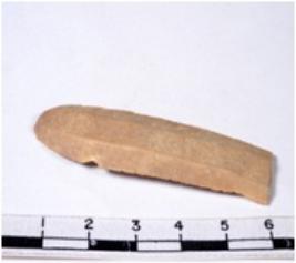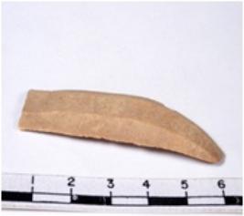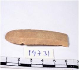 | Description / विवरण | A fragment of a rectangular shaped chert blade showing parallel sides with sharp cutting edges having smooth surface and uneven section. |