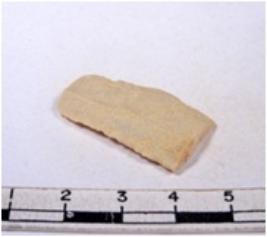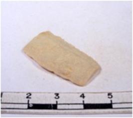 | Description / विवरण | A fragment of a rectangular shaped chert blade showing dorsal sides with sharp edges having smooth surface and triangular section |