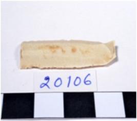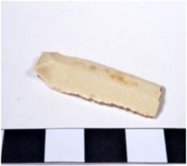 | Description / विवरण | A fragment of a rectangular shaped chert blade showing dorsal sides with sharp cutting edges having smooth surface and triangular section. |