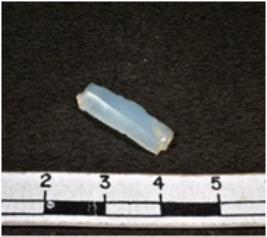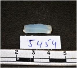 | Description / विवरण | A fragment of a rectangular shaped chalcedony blade showing dorsal sides with sharp edges having smooth surface and triangular section. |