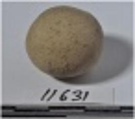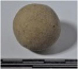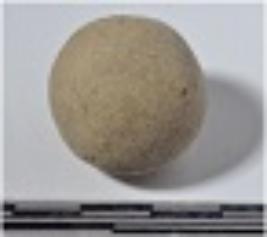 | Description / विवरण | A terracotta sling ball round in shape of rough surface. |