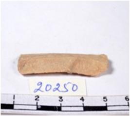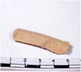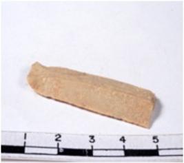 | Description / विवरण | A fragment of a rectangular shaped chert blade showing dorsal sides with sharp cutting edges having smooth surface and triangular section. |