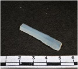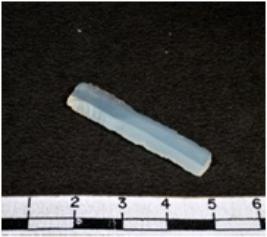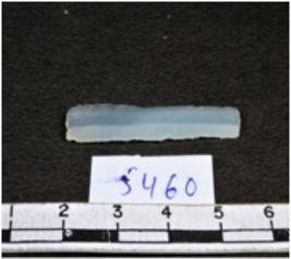 | Description / विवरण | A fragment of a rectangular shaped chert blade showing dorsal sides with sharp cutting edges having smooth surface and triangular section. |