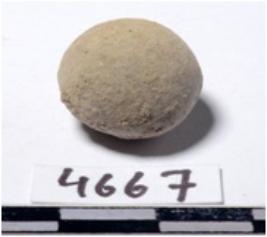 | Description / विवरण | A stone sling ball, round in shape of smooth surface |