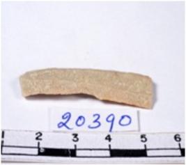 | Description / विवरण | A fragment of a rectangular shaped chert blade showing dorsal sides with sharp cutting edges having smooth surface and triangular section. |