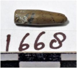 | Description / विवरण | A fragment of a stone drill bit circular in section broken from one end of smooth surface. |