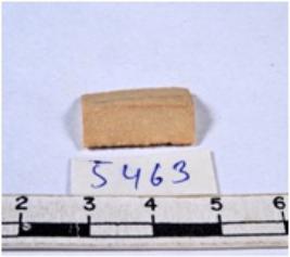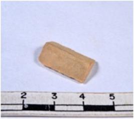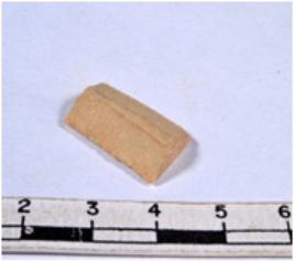 | Description / विवरण | A fragment of a rectangular shaped chert blade showing dorsal sides with sharp cutting edges having smooth surface and triangular section. |