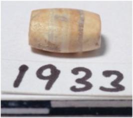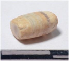 | Description / विवरण | A small banded agate barrel shaped unfinished bead, oval in section of smooth surface. |