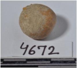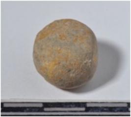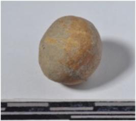 | Description / विवरण | A small stone sling ball round in shape of rough surface. |