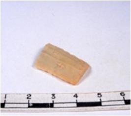 | Description / विवरण | A fragment of a rectangular shaped chert blade showing dorsal sides with sharp cutting edges having smooth surface and triangular section. |