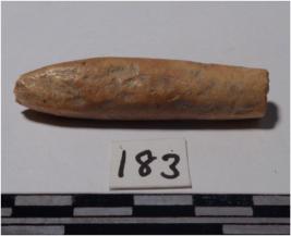 | Description / विवरण | A fragment of a bone point, broken painted one side, circular in section of smooth surface. |