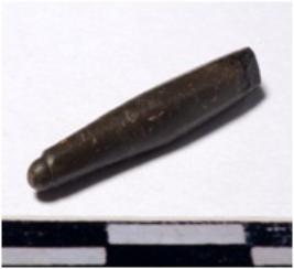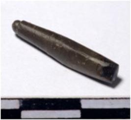 | Description / विवरण | A fragment of a stone drill bit circular in section pointed on one end of smooth surface. |