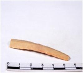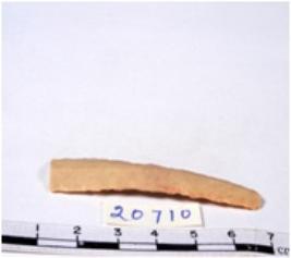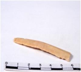 | Description / विवरण | A fragment of a rectangular shaped chert blade showing flat sides with sharp cutting edges having smooth surface and uneven section. |