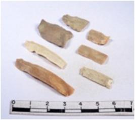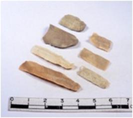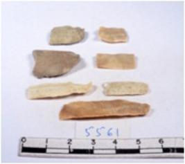 | Description / विवरण | A fragment of a rectangular shaped chert blade showing dorsal sides with sharp cutting edges having smooth surface and triangular section. |