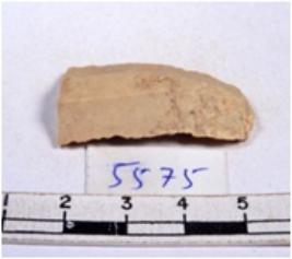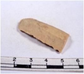| Description / विवरण | A fragment of a rectangular shaped chert blade showing dorsal sides with sharp edges having smooth surface and triangular section. |