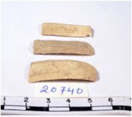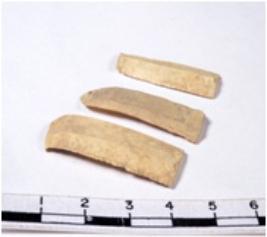 | Description / विवरण | A fragment of a rectangular shaped chert blade showing dorsal sides with sharp cutting edges having smooth surface and triangular section. |