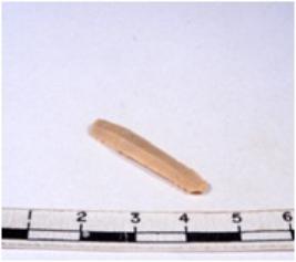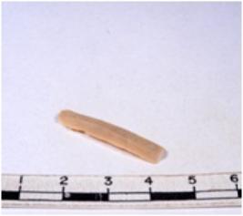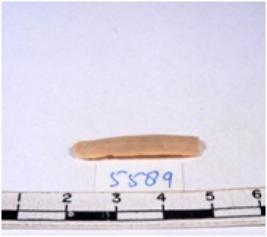| Description / विवरण | A fragment of a rectangular shaped chert blade showing dorsal sides with sharp edges having smooth surface and triangular section. |