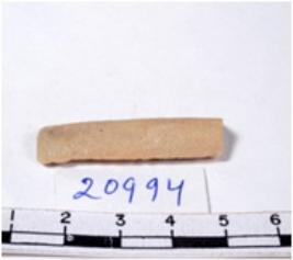 | Description / विवरण | A fragment of a rectangular shaped chert blade showing dorsal sides with sharp cutting edges having smooth surface and triangular section. |