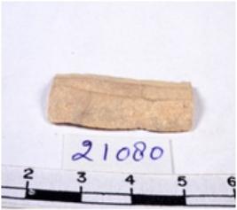 | Description / विवरण | A fragment of a rectangular shaped chert blade showing dorsal sides with sharp cutting edges having smooth surface and triangular section. |