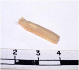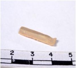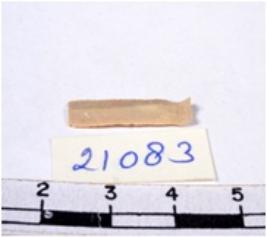 | Description / विवरण | A fragment of a rectangular shaped chert blade showing dorsal sides with sharp cutting edges having smooth surface and uneven section. |
