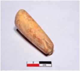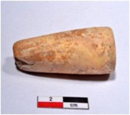 | Description / विवरण | A standard sized of shell point showing conical in shaped, pointed on end, broken from one end, having rough surface. |