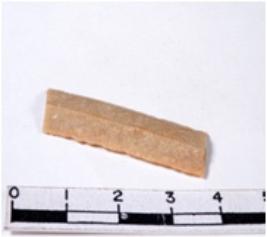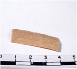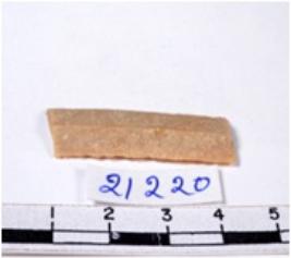 | Description / विवरण | A fragment of a rectangular shaped chert blade showing parallel sides with sharp cutting edges having smooth surface and uneven section. |